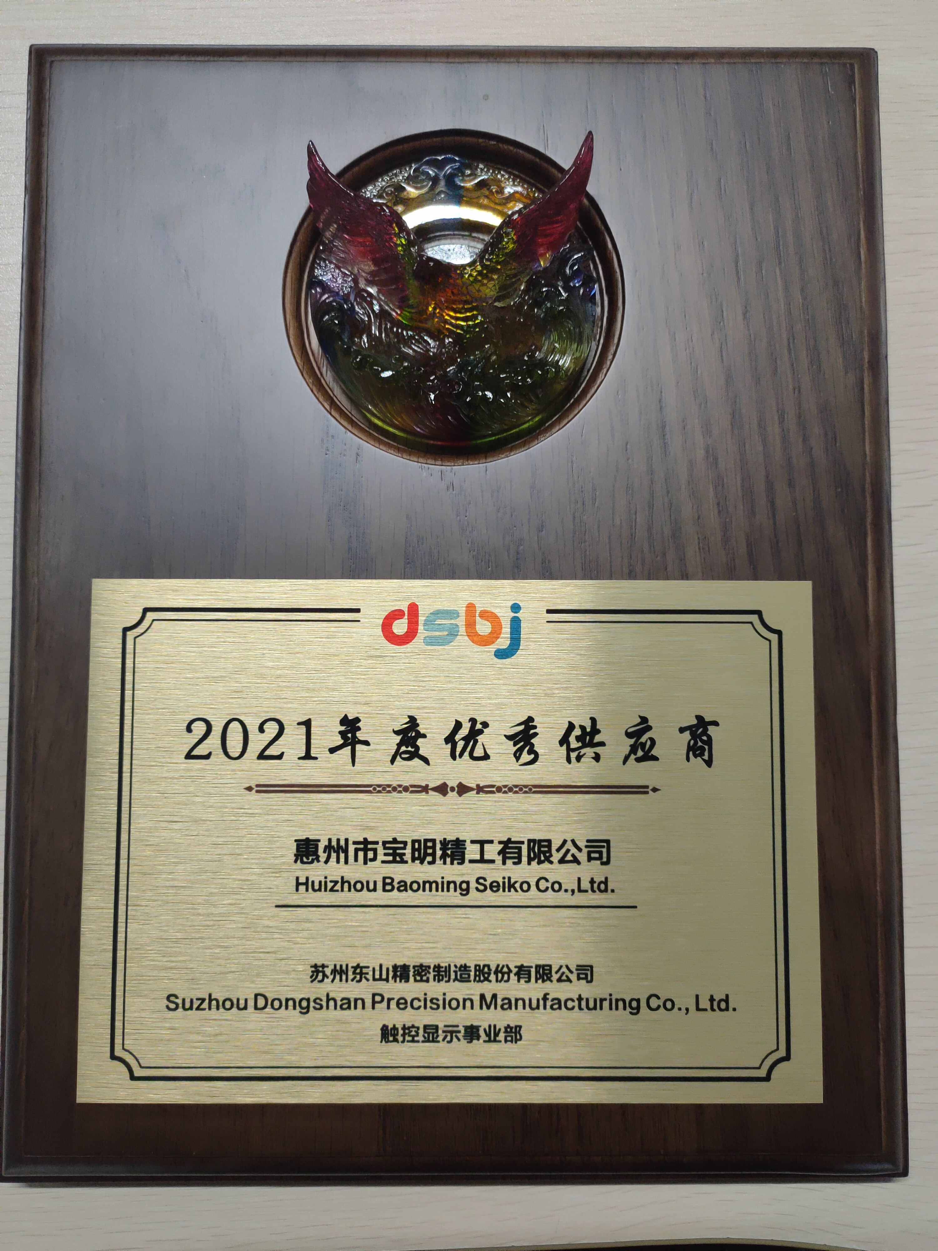 寶明榮獲東山精密“2021年度優(yōu)秀供應(yīng)商”獎